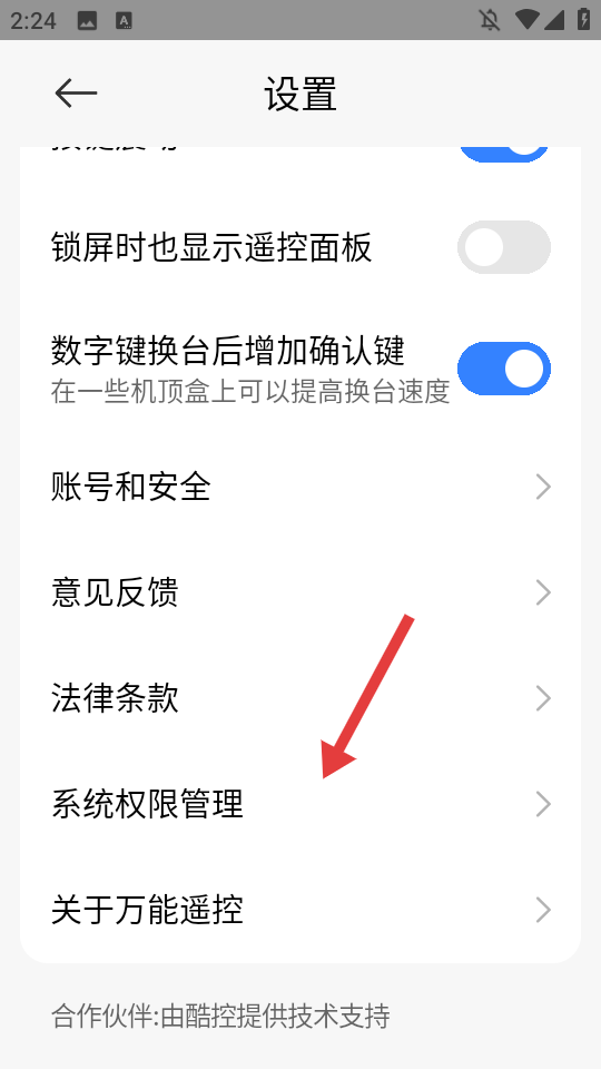 3、在设置界面,点击【系统权限管理】。