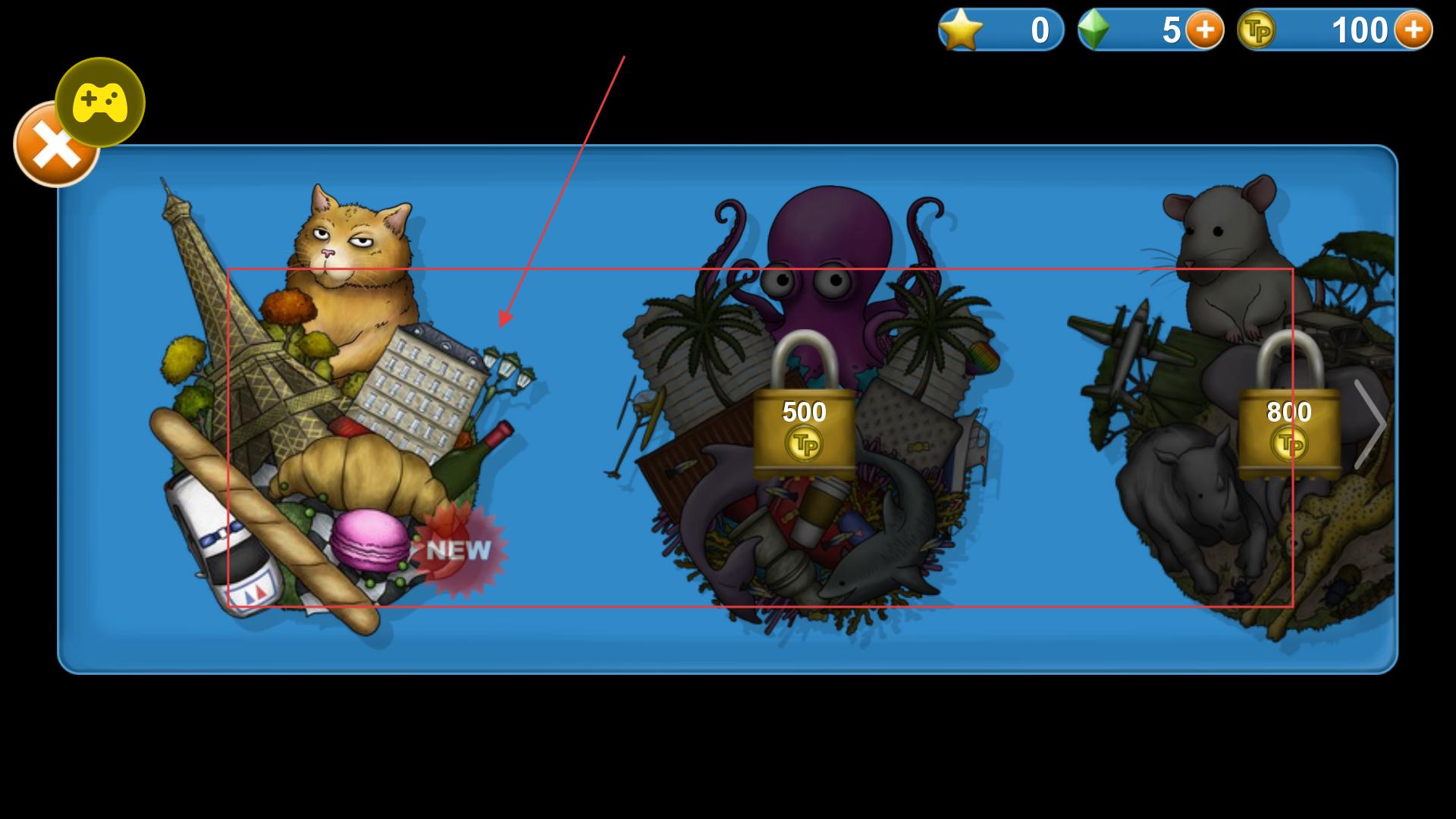1、在场景选择界面,初始解锁猫主题场景,其他场景需消耗500/800资源解锁,选择对应场景可进入不同主题的清理关卡。