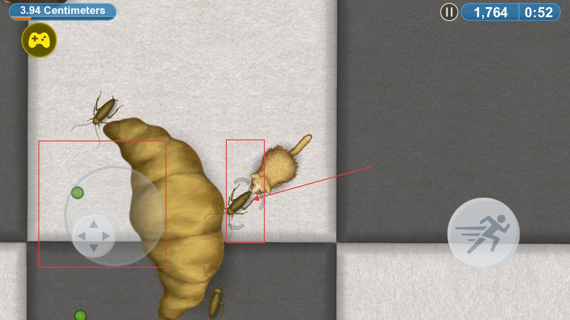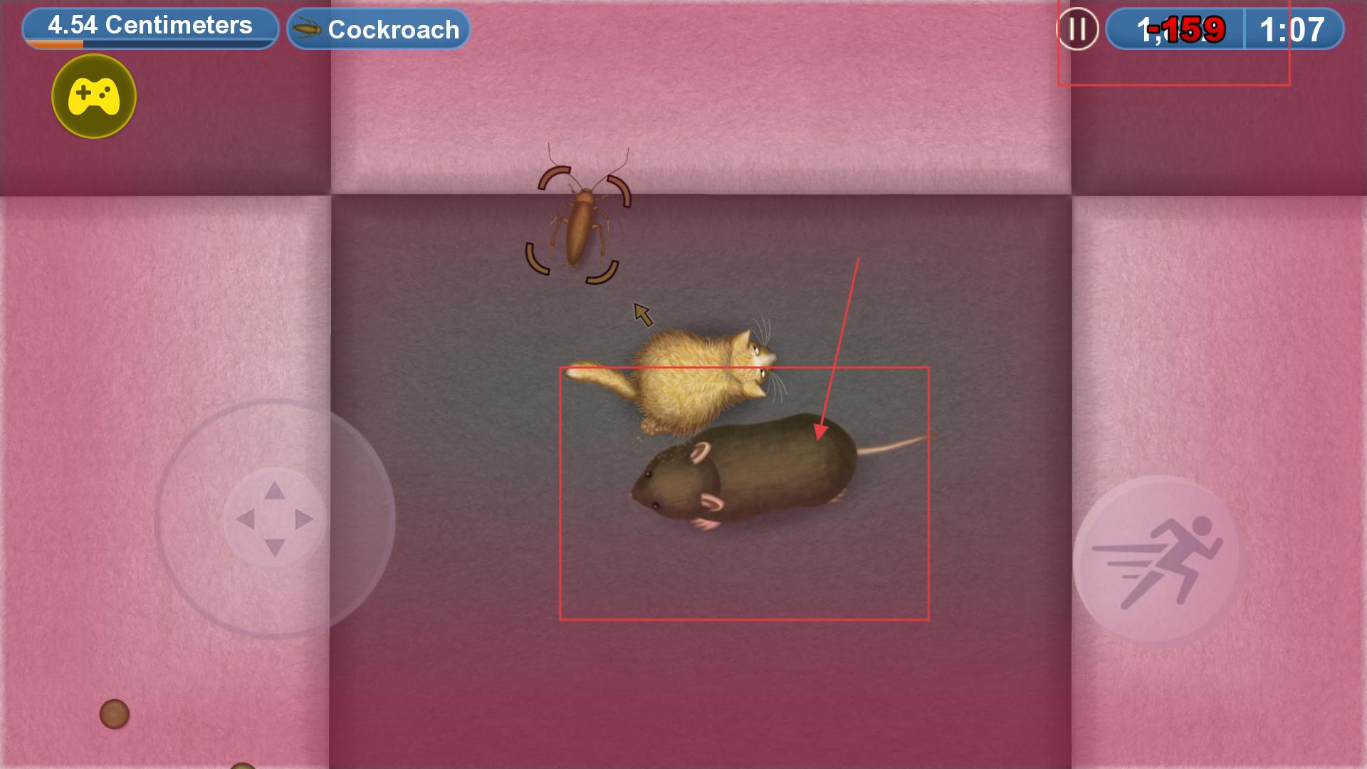 3、关卡中通过方向键操控角色移动,靠近【Cockroach】可触发吞噬,积累成长进度,同时收集绿色球体提升分数。