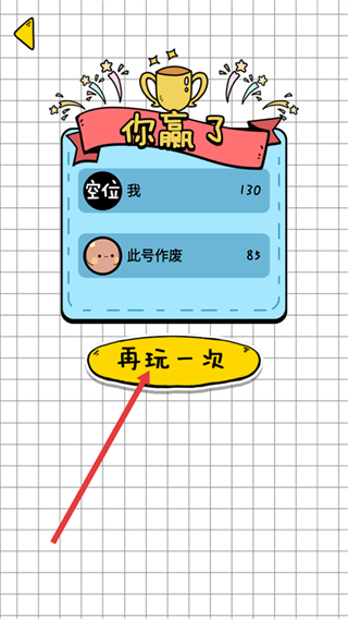 4、对局结束后查看得分情况,点击再玩一次按钮重复挑战积累经验。