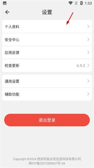 2、点击【个人资料】,进入个人资料页面。