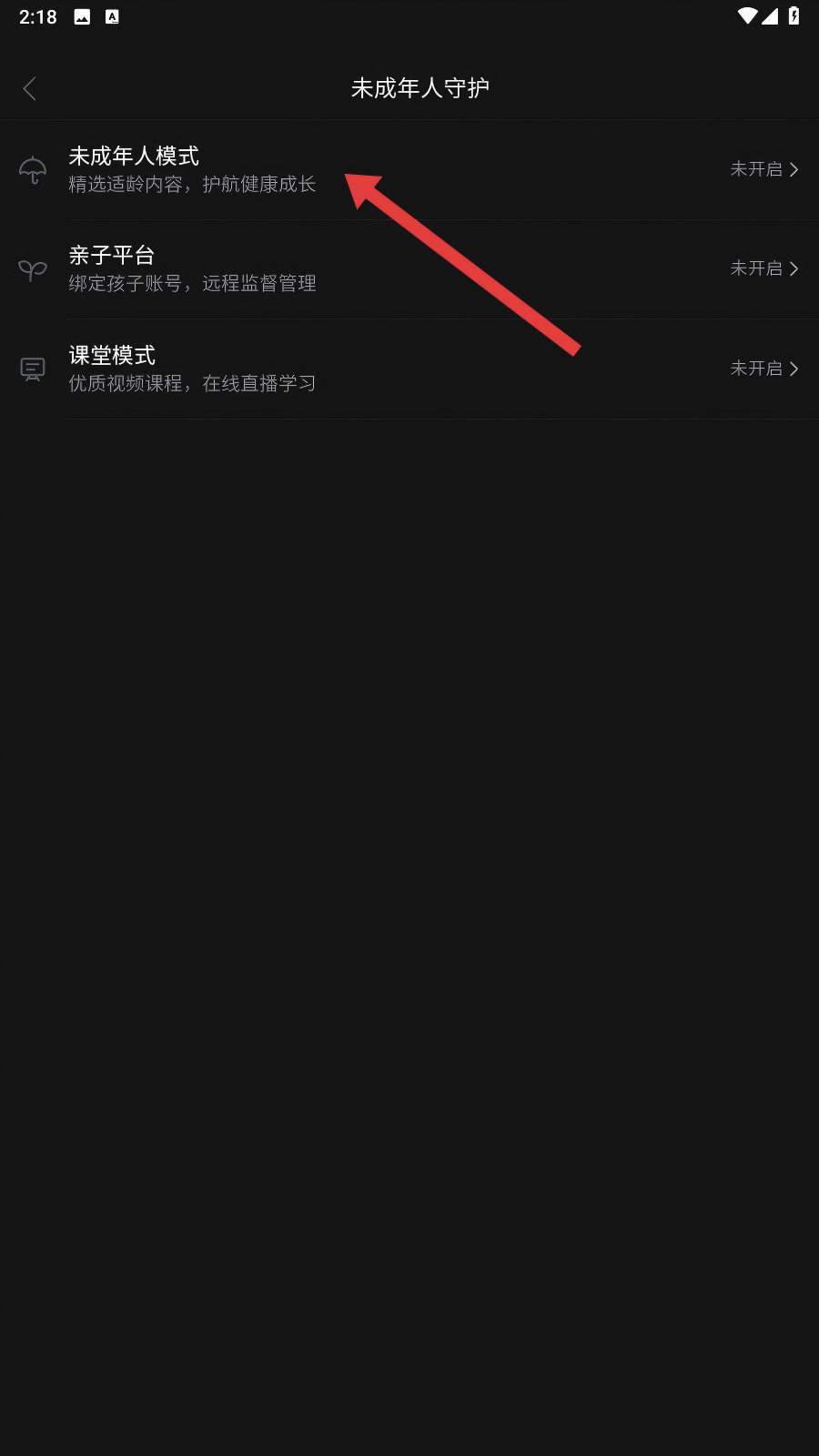 2、在【未成年人守护】页面里,瞧见【未成年人模式】,点击进去就可继续设置咯。