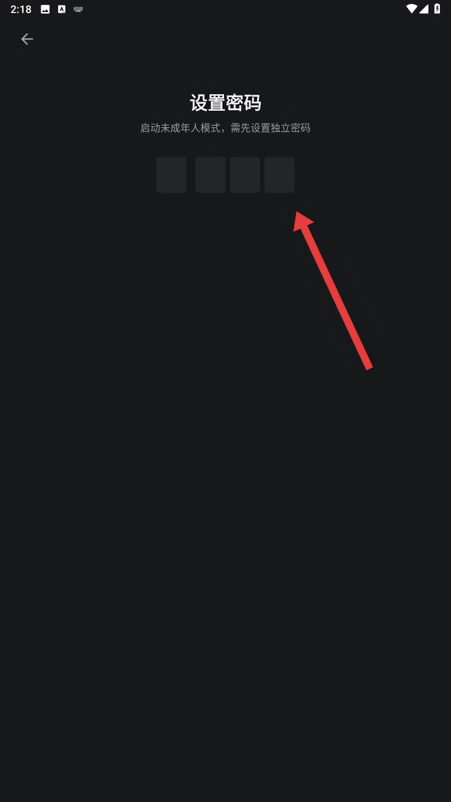 4、随后到【设置密码】页面,输入要设置的独立密码,如此未成年人模式就设置好啦。