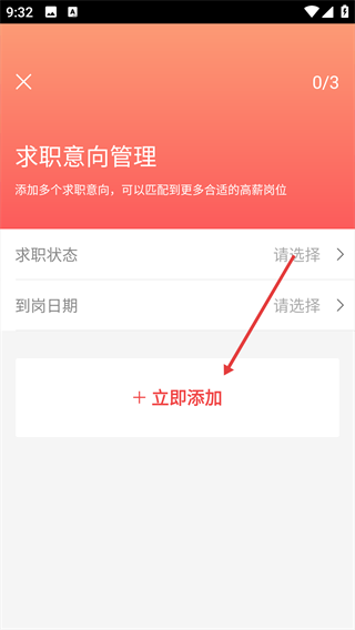 2、在求职意向管理页面,点击“立即添加”按钮。