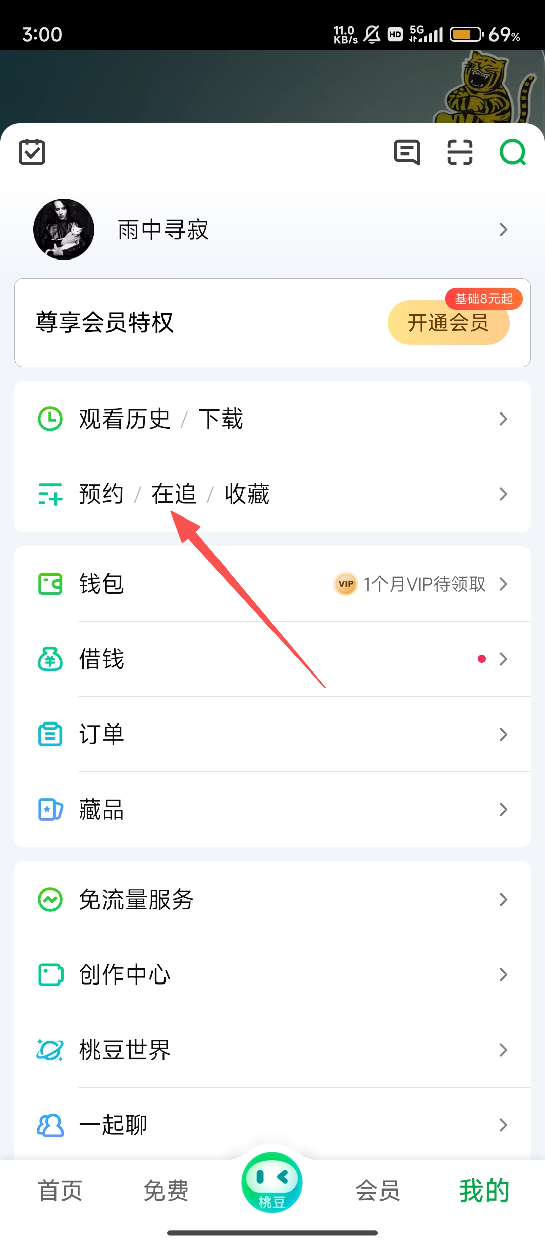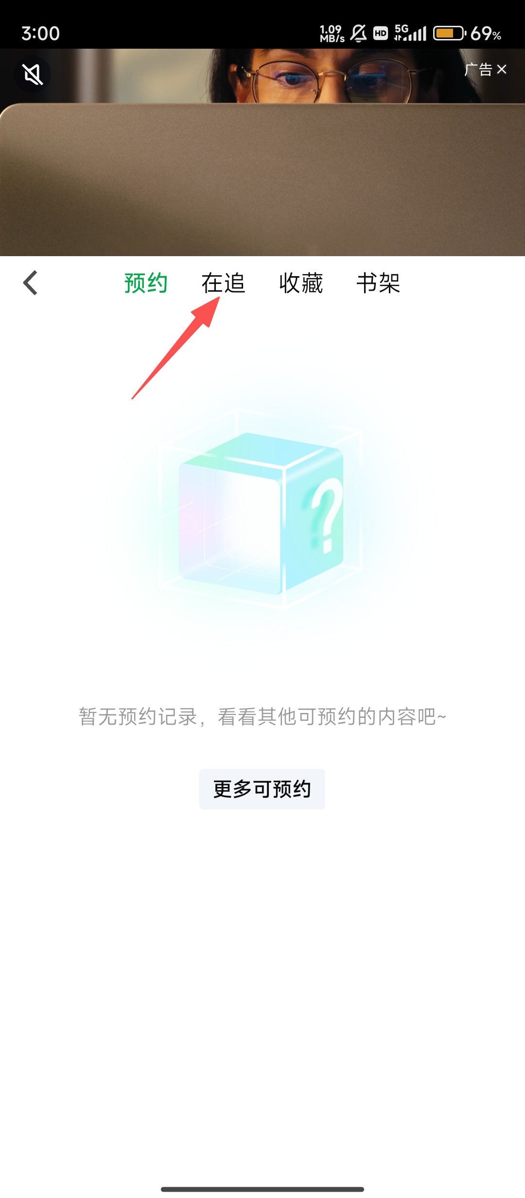 2、在【我的】界面,找到【预约在追收藏】选项并点击,即可进入管理追更内容的板块啦。