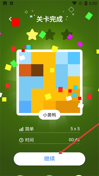 4、通关后显示【关卡完成】,点击【继续】按钮可进入下一关,解锁新拼图图案。