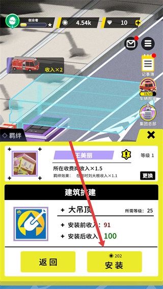 3、在建筑扩建界面选择大吊顶选项,点击安装按钮完成操作。