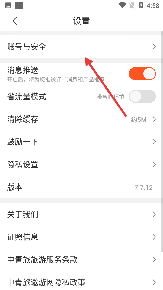 3、在设置界面点击【账号与安全】,进入账号与安全页面。