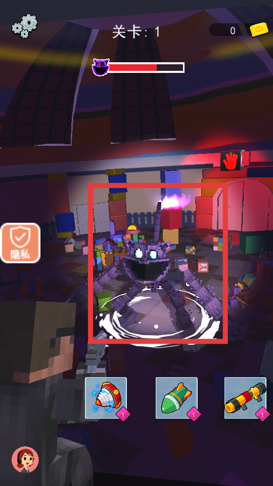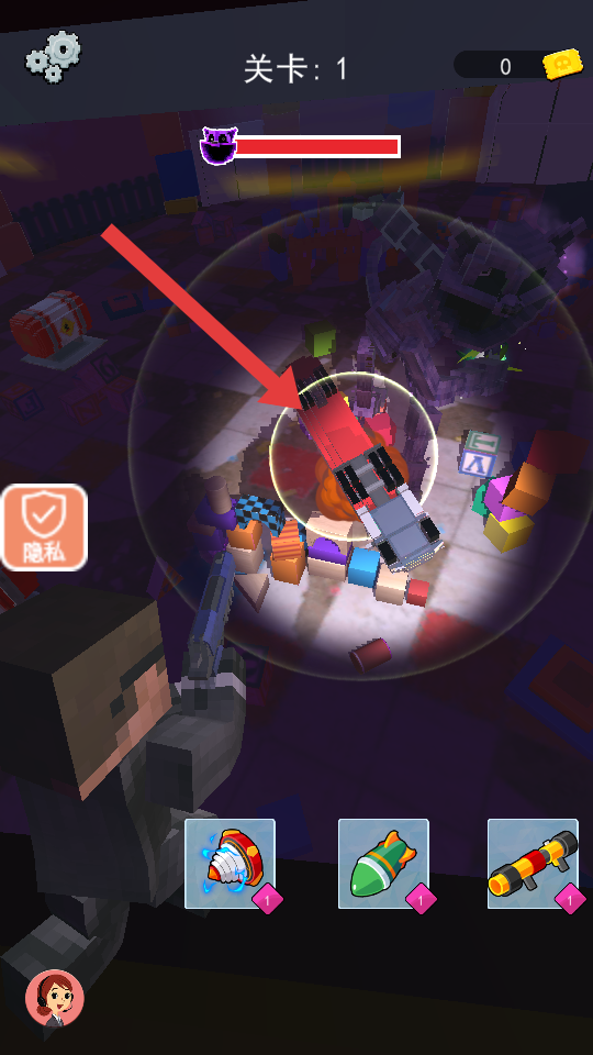 2、进入关卡后,怪物会对角色扔道具,玩家需点击指标位置将其打爆。