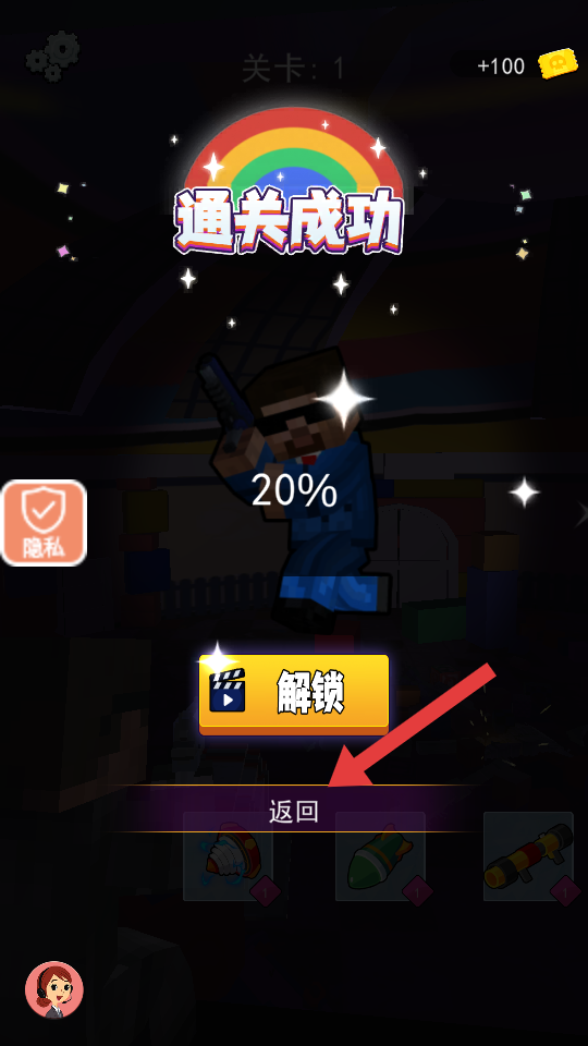 4、成功击败怪物后,点击【返回】按钮,回到主界面准备挑战下一关卡。
