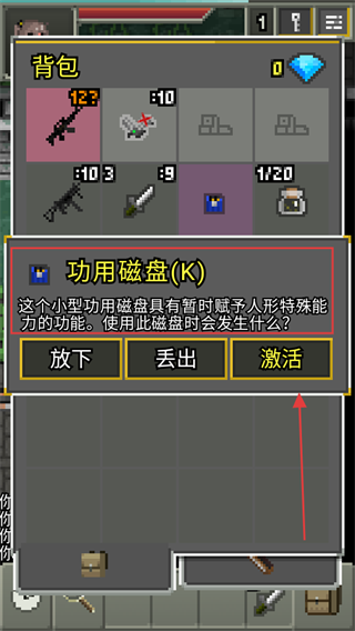 3、背包内找到【功用磁盘(K)】,了解其特殊能力后点击激活,获取临时特殊技能助力探险。