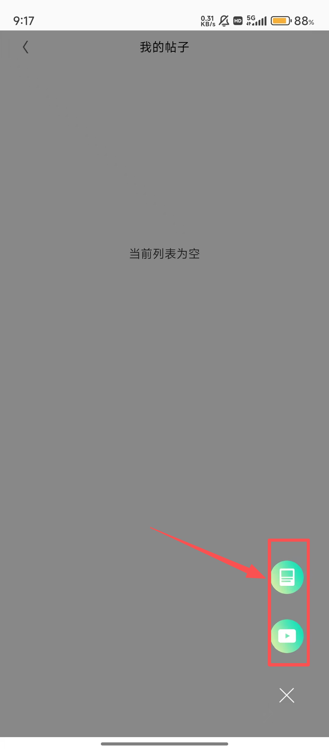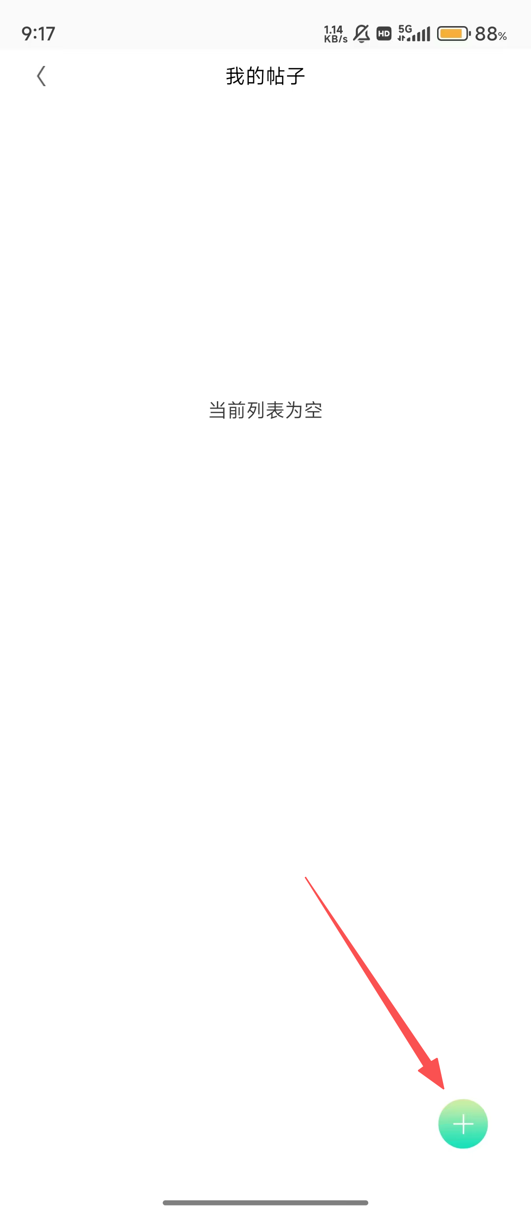 2、在【我的帖子】页面,点击右下角的+号按钮,就能开启发帖子的流程哦。