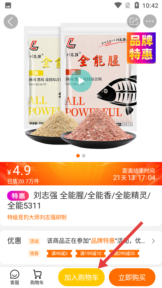 2、进入商品详情页后,点击【加入购物车】按钮,把商品添加到购物车。