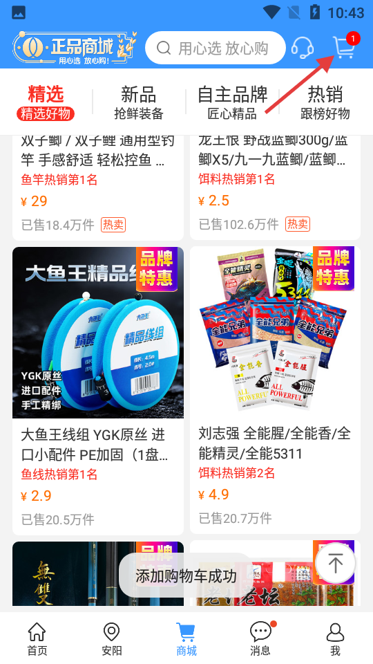 3、返回商城页面,点击右上角购物车图标,查看已加入购物车的商品列表。