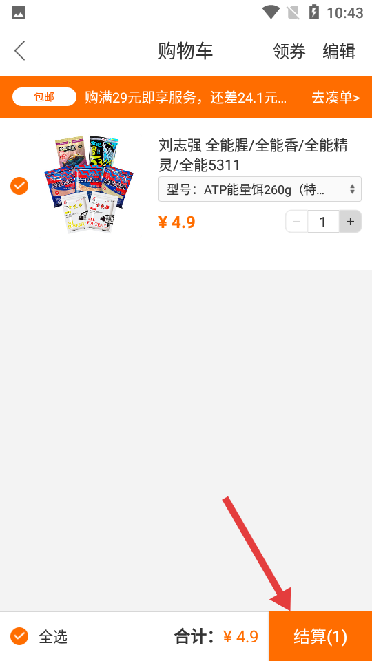 4、在购物车页面,确认商品无误后,点击【结算】按钮,进行订单结算操作。