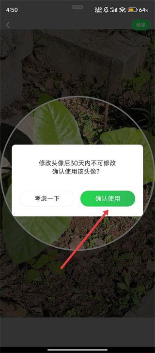 4、选好图片后,我们点击【确认使用】,这样新头像就设置成功啦,注意修改后30天内不可再改哦。