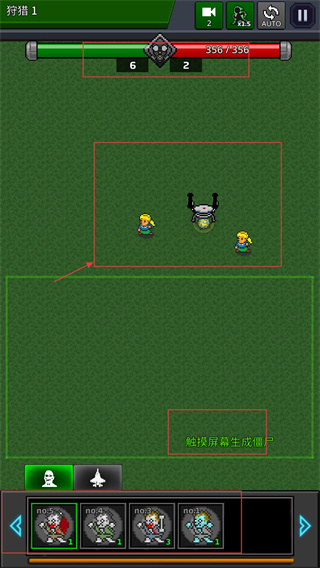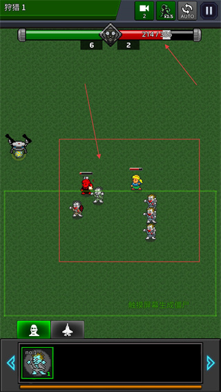 3、战斗中触摸屏幕生成已解锁的僵尸,部署僵尸队伍与敌方单位作战,生成的僵尸会自动攻击敌方,消耗敌方血量。