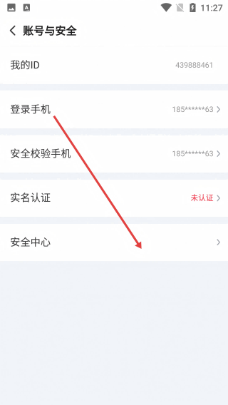 3、进入账号与安全页面后,点击【安全中心】选项。
