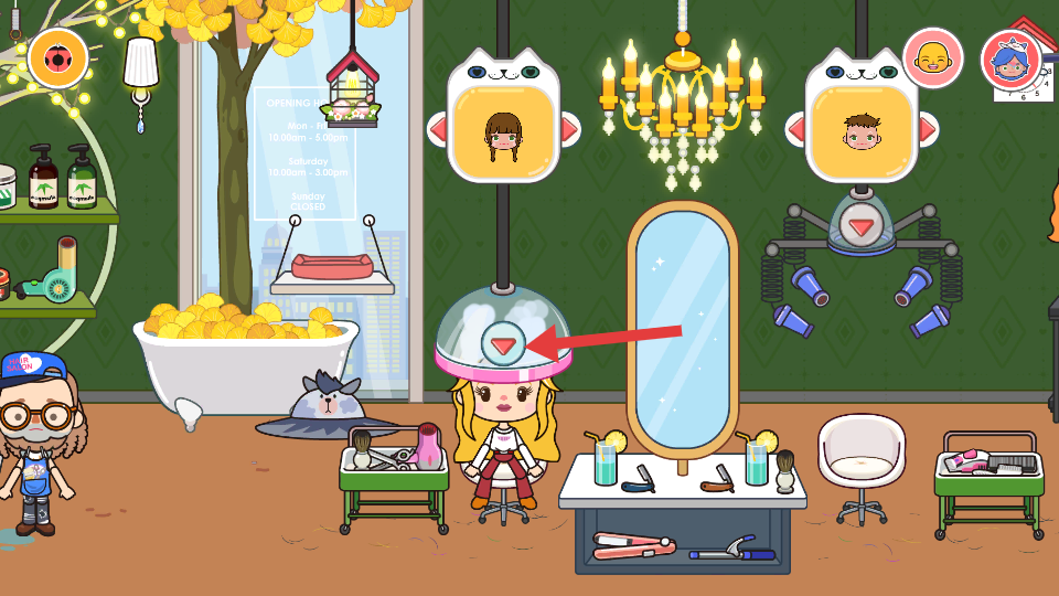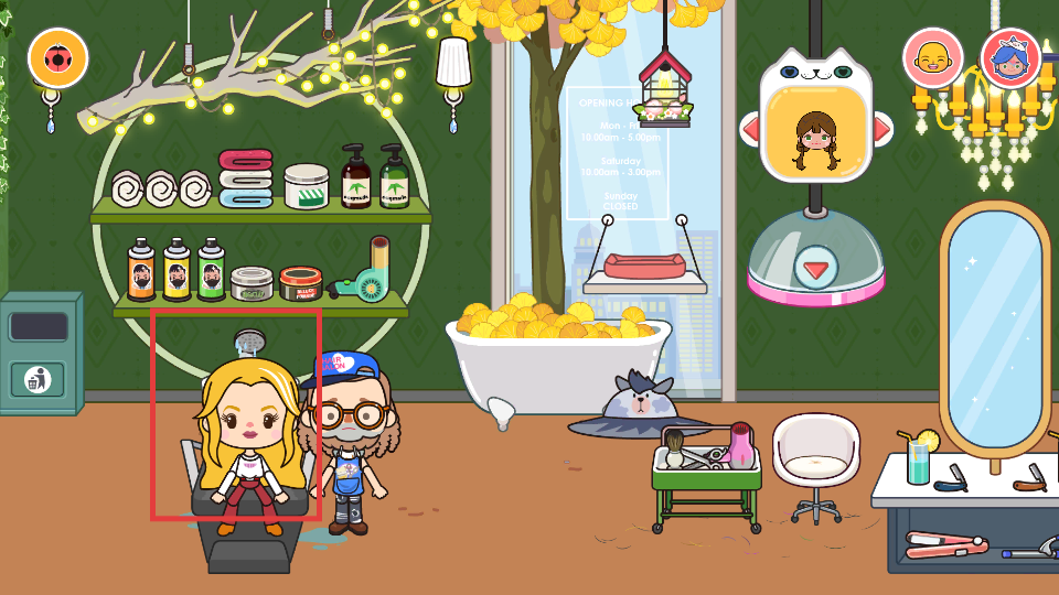1、点击美发店建筑,进入店内,开启美发互动流程。