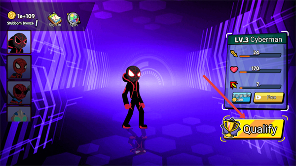 1、在角色界面点击【Qualify】按钮,开启对战挑战。