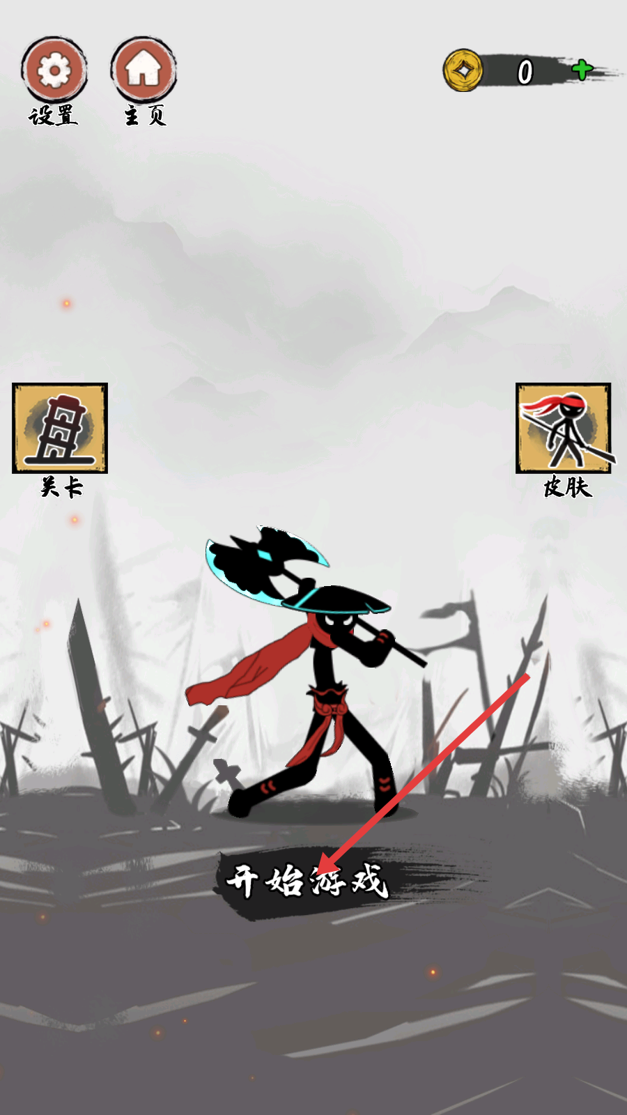 2、点击红色箭头指向的【开始游戏】按钮,开启游戏关卡。