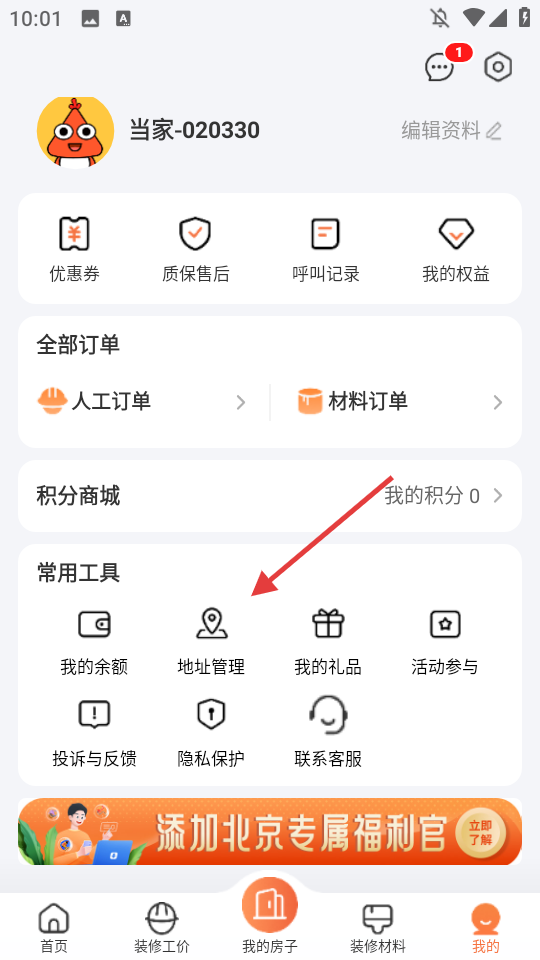 2、在【我的】页面,找到【地址管理】选项并点击。