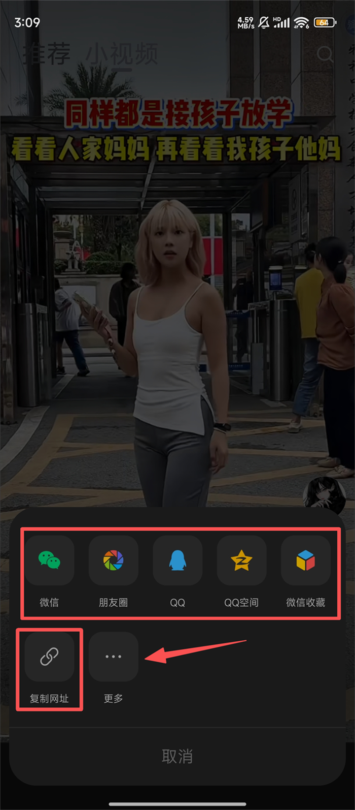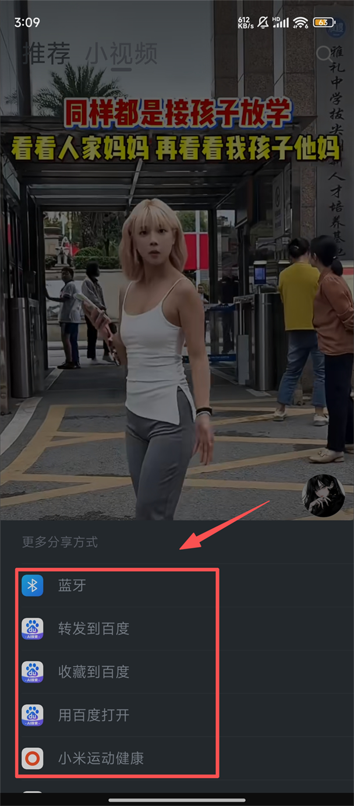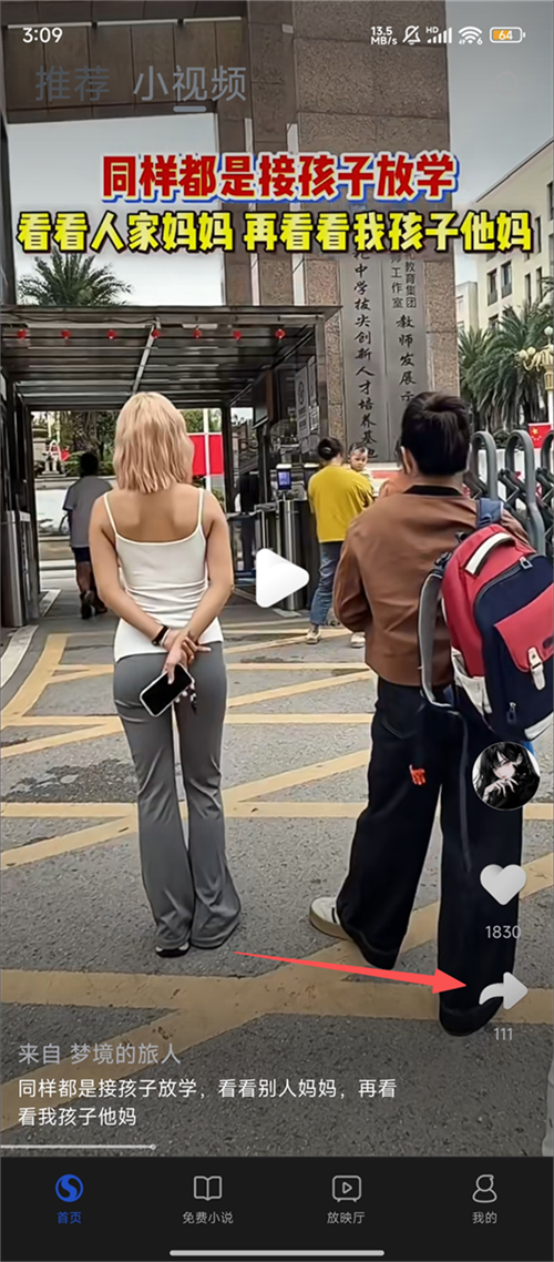 2、在小视频页面找到要转发的视频,点击视频右侧的分享箭头,准备进行转发操作哦。