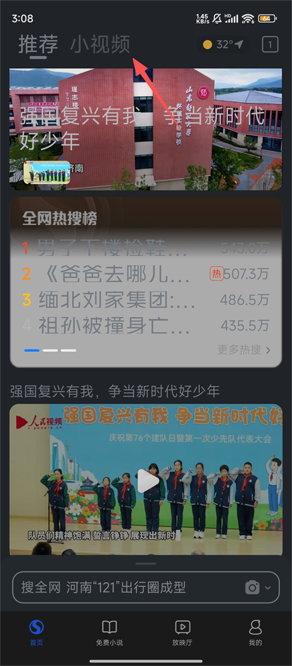 1、我们打开搜狗浏览器,点击顶部的【小视频】标签,进入小视频浏览页面呢。