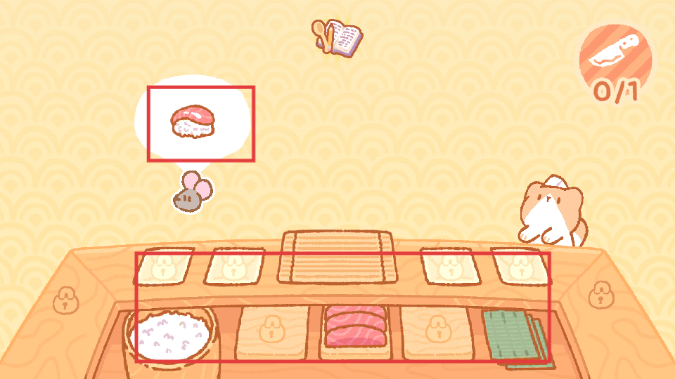 4、按照食材组合,制作寿司,满足需求,推进经营任务。