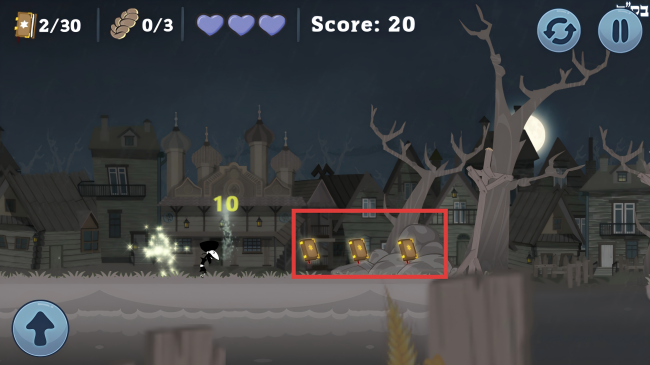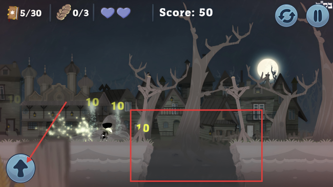 4、遇到悬崖时,点击左下方箭头按钮,让角色跳跃跨过。