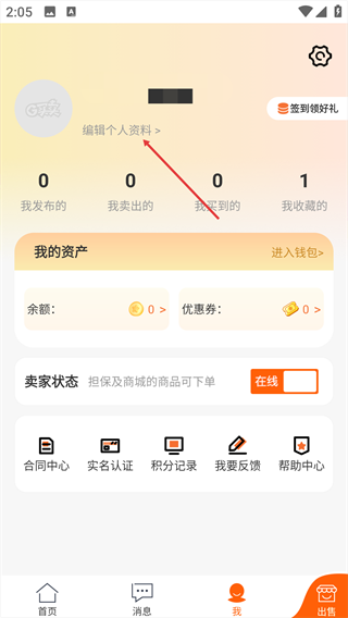 1、进入“我”的页面,点击“编辑个人资料”选项。