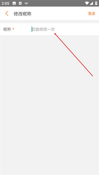 4、在“修改昵称”页面,输入新昵称,点击“发送”按钮,完成昵称的更改操作。