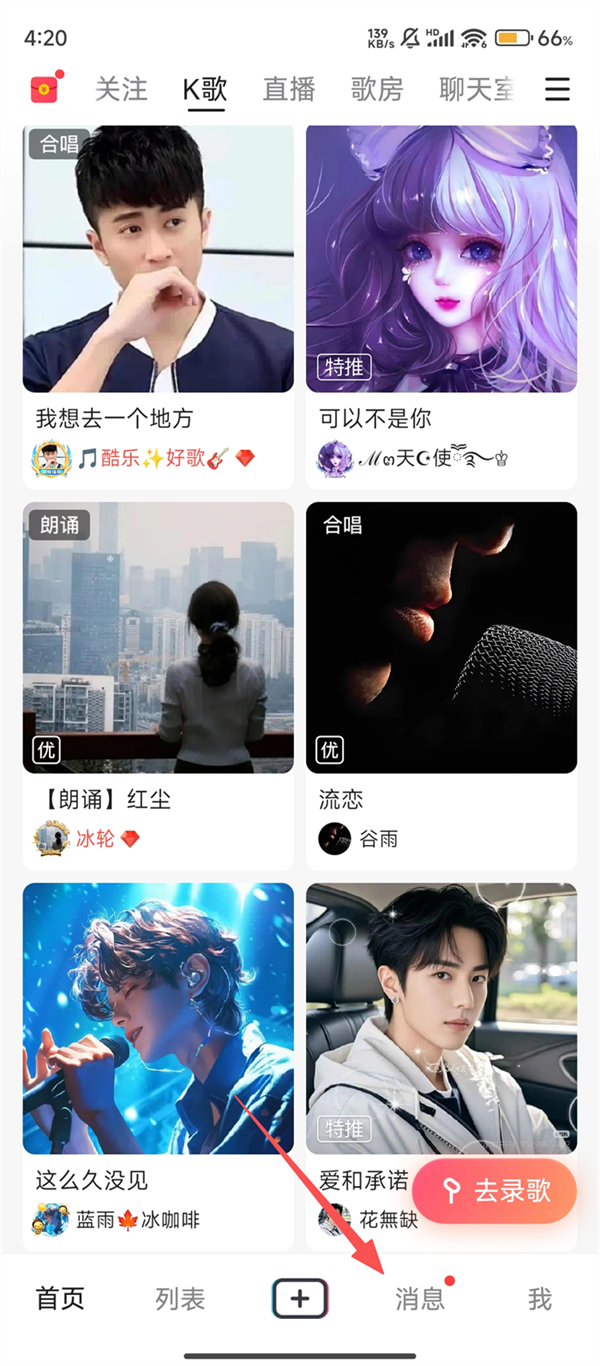4、进入歌友的歌房后,点击底部的聊天按钮,就可以和好友愉快聊天啦。