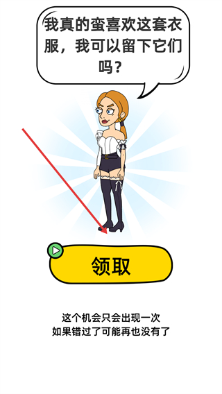 4、通关后出现服装领取机会,点击“领取”按钮可获得这套服装,该机会仅出现一次,错过后无法再次获取。