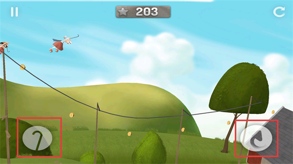 2、控制角色在树间滑行时收集沿途金币,利用左右按钮调整方向保持平衡。