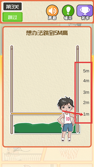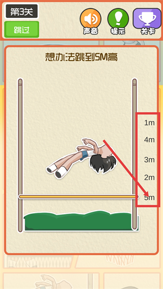 2、将右侧的高度1与高度5数字对换,减低难度,积累跳跃经验与力量,为冲击更高目标做准备。