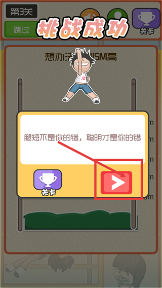 4、挑战成功后点击【继续】按钮,进入下一关,继续突破更高难度的跳高任务。