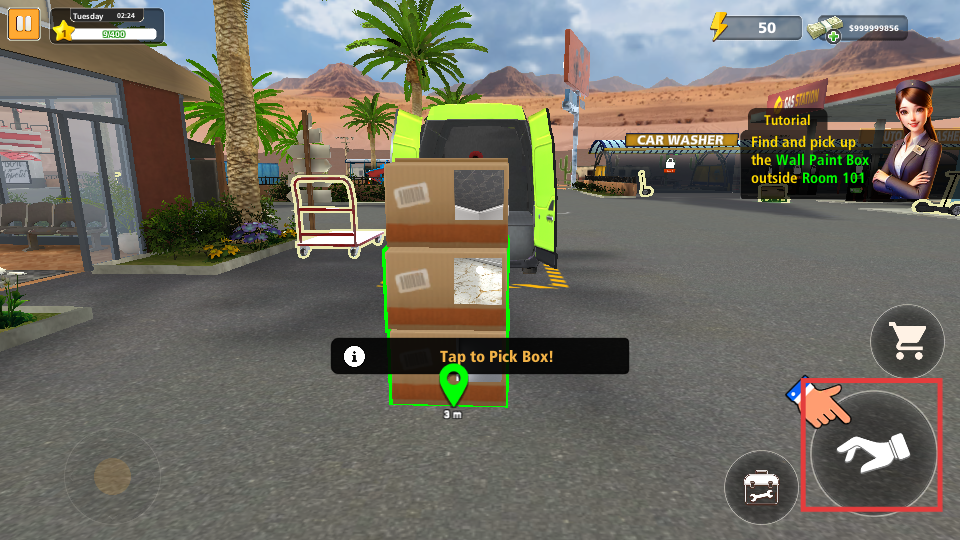 4、点击拾取按钮,捡起【Wall-Paint-Box】,完成物品收集,推进游戏进程。