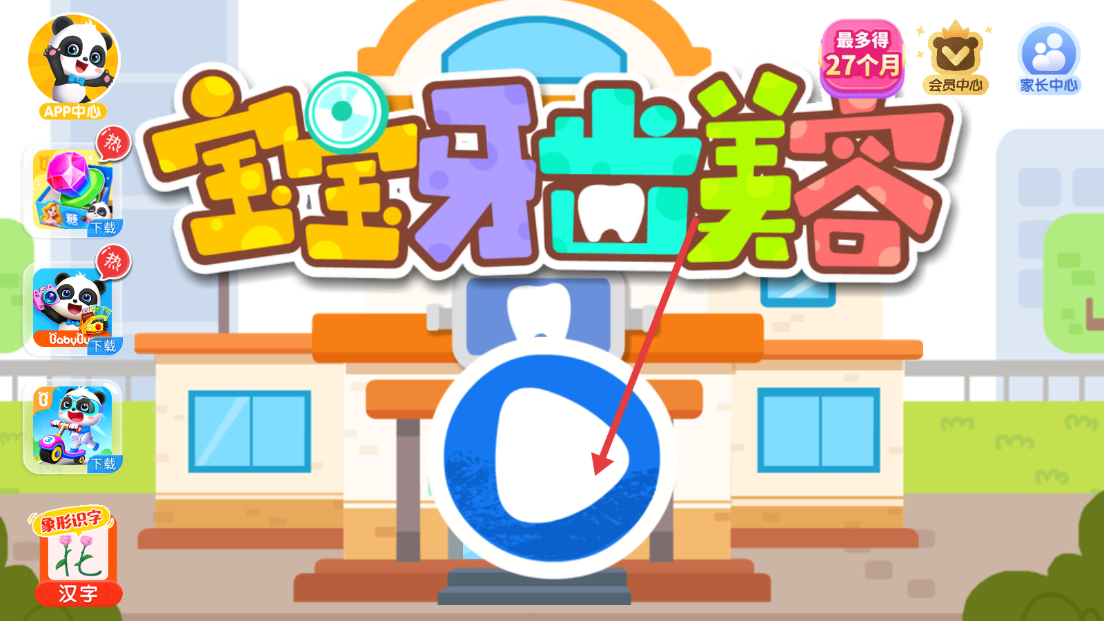 1、点击蓝色播放按钮进入【宝宝牙齿美容】游戏。