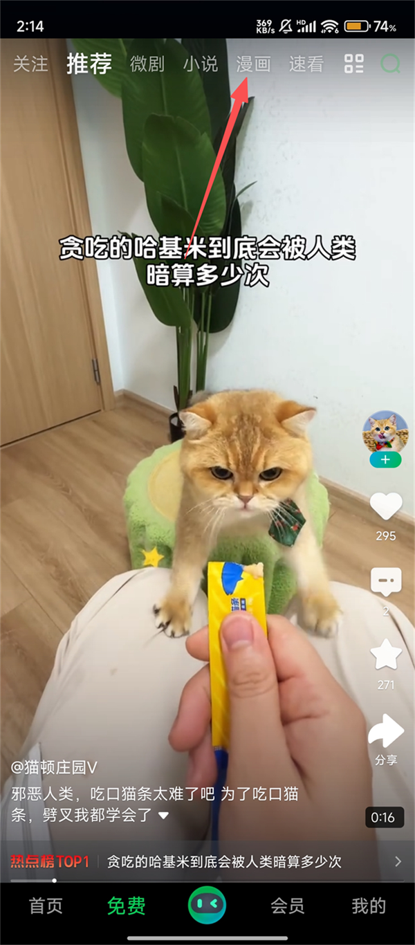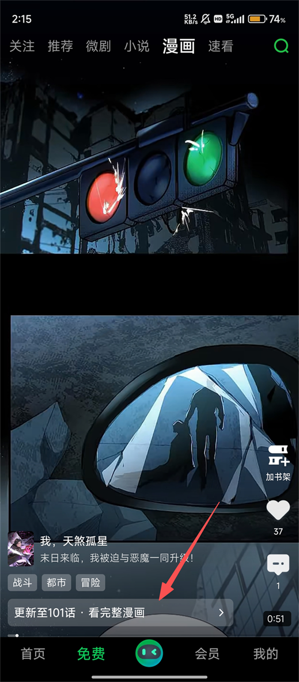 2、在免费页面顶部,找到【漫画】标签,轻轻点击即可切换到漫画专区,超多漫画任你挑选哦。