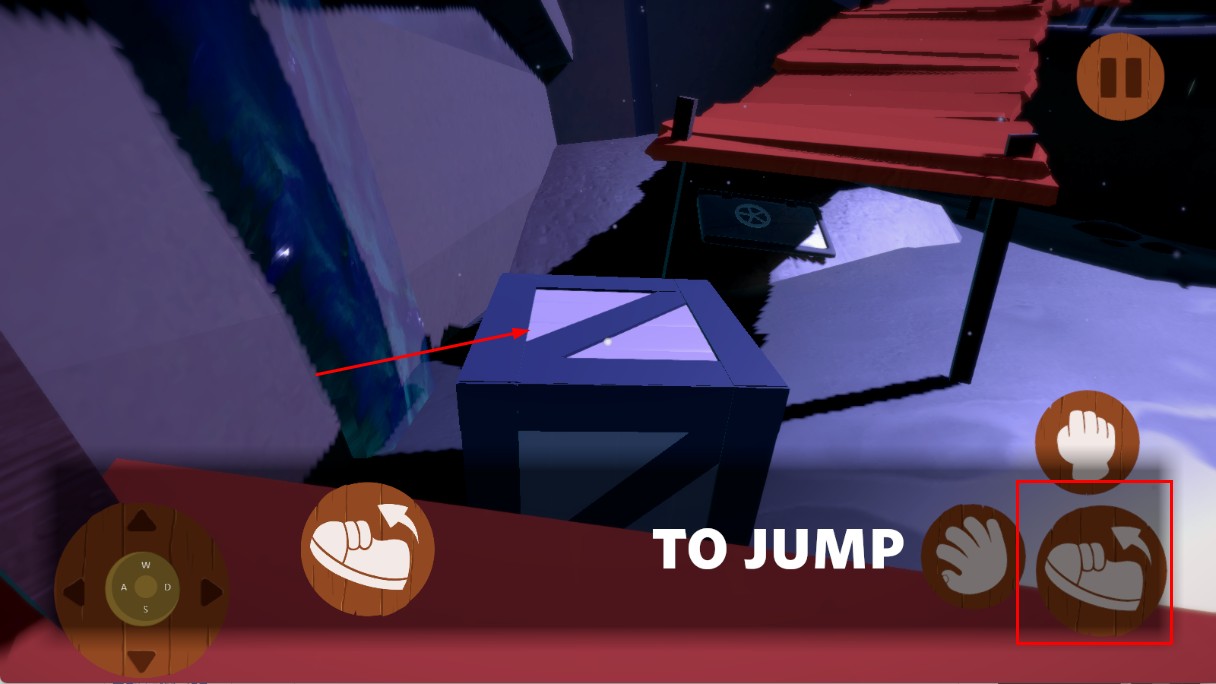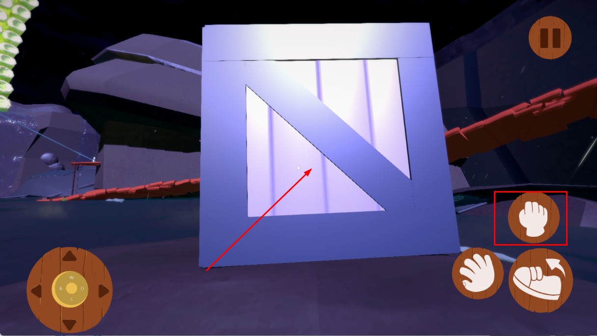 3、遇到箱子等物体,点击右侧拳头图标,托举移动他至断桥中间,开辟前进路径。