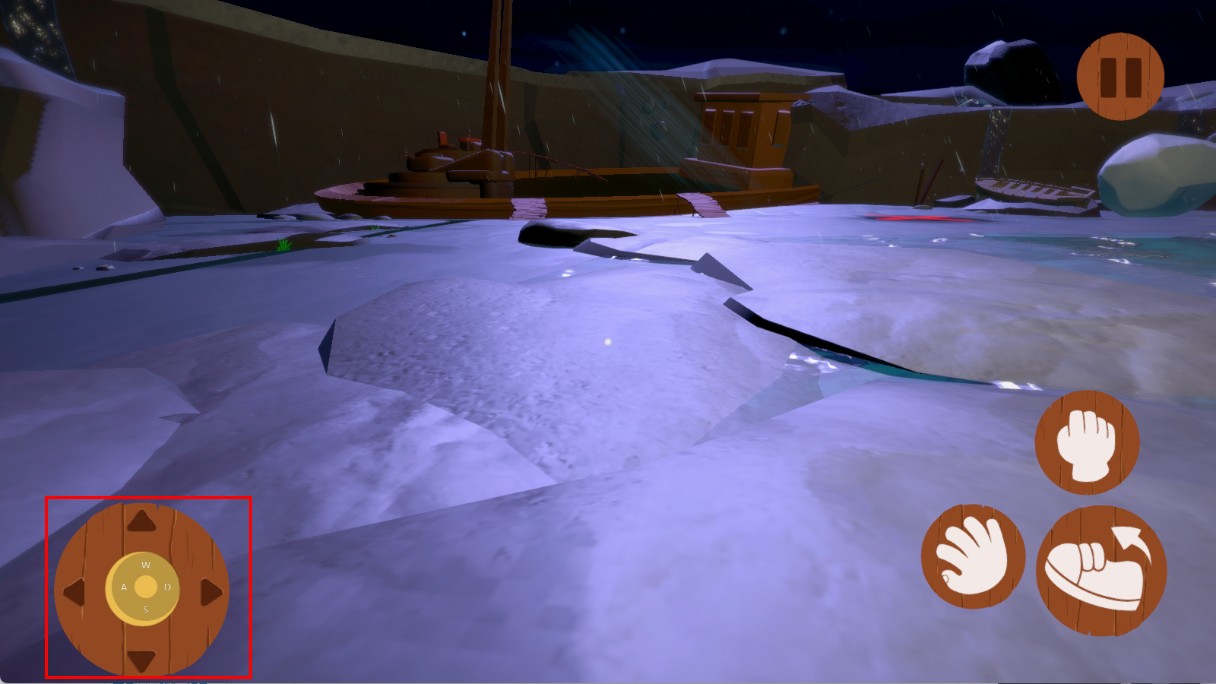 2、用左下角虚拟摇杆,操控角色在场景移动,探索环境。