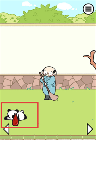 3、使用【红色瓶子】里的番茄酱,把小熊猫伪装成受伤状态,这样就能避开扫地人员的注意啦。