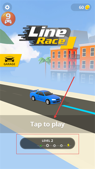 1、点击【Taptoplay】进入Level2关卡,利用积累的金币资源,准备开启新的赛道竞速。