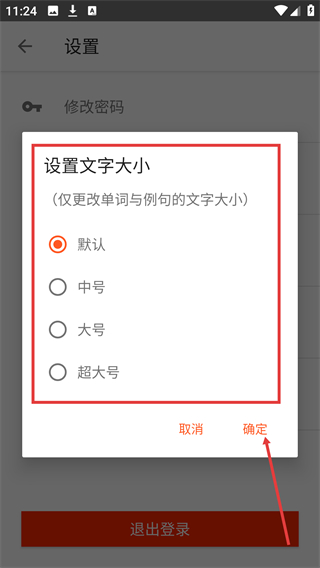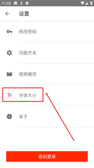 3、在设置页面,点击【字体大小】选项,可弹出文字大小设置窗口。