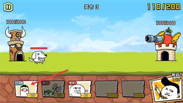2、【关卡3】中,优先点击箭头所指【等级1】进行升级。