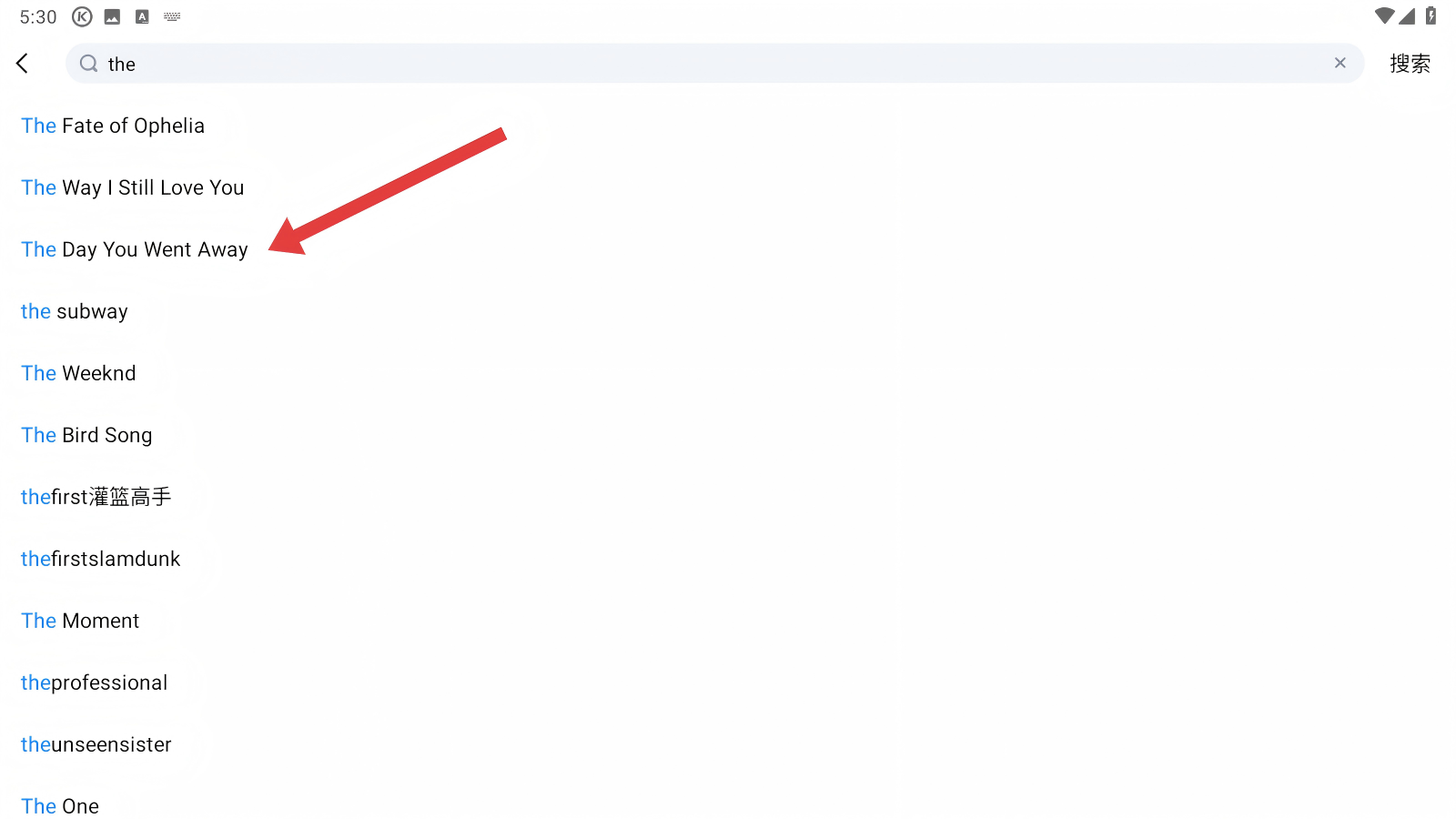 3、输入关键词后,在搜索结果列表里,选择自己想演唱的歌曲吧。