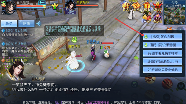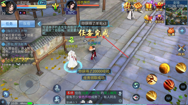 4、击败【白衣琴师】,完成【琴心剑魄】任务,获得羊毛和经验等奖励。