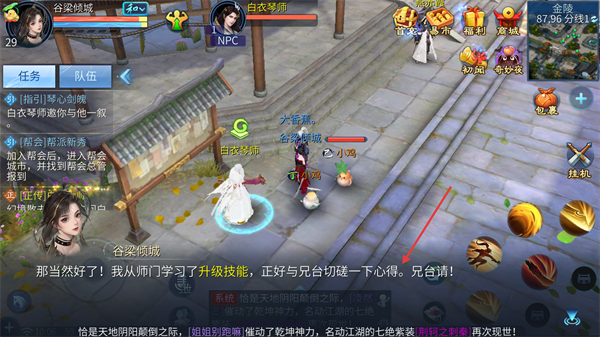 2、与【白衣琴师】对话,与其切磋技能心得。