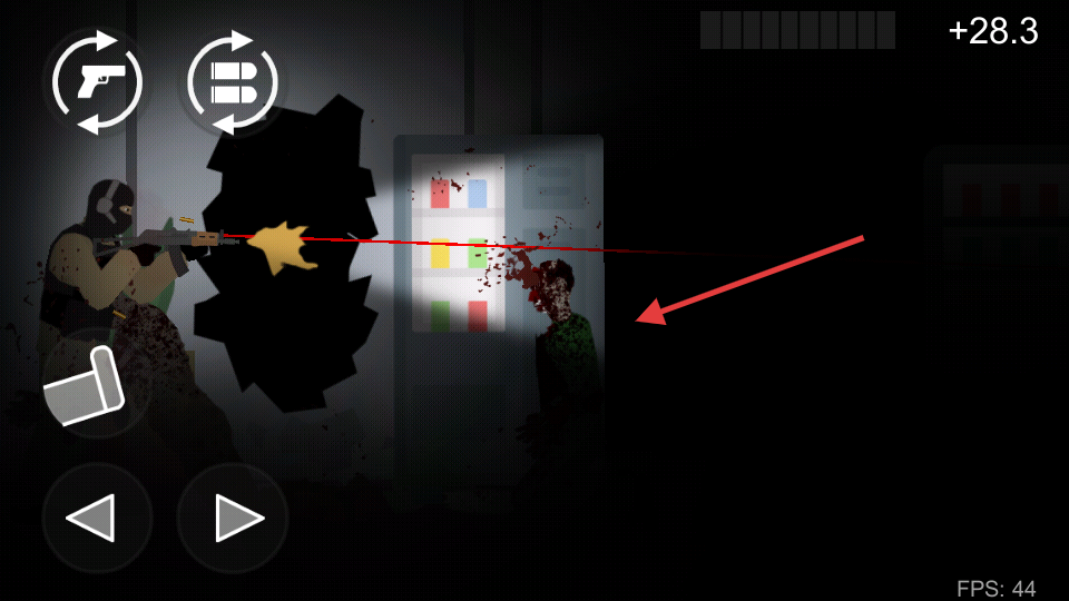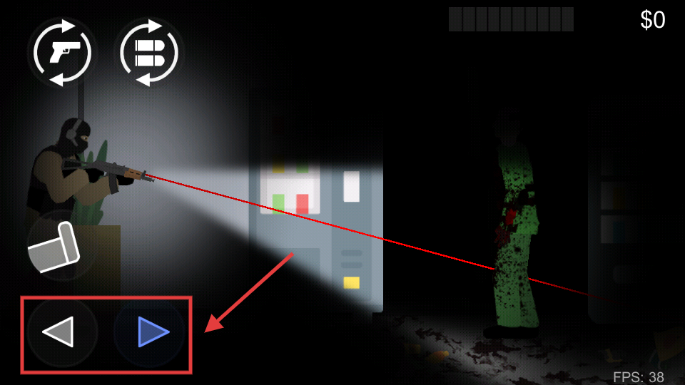 3、通过左下角左右移动按钮调整站位,躲避僵尸或优化射击角度,配合射击按钮输出伤害。